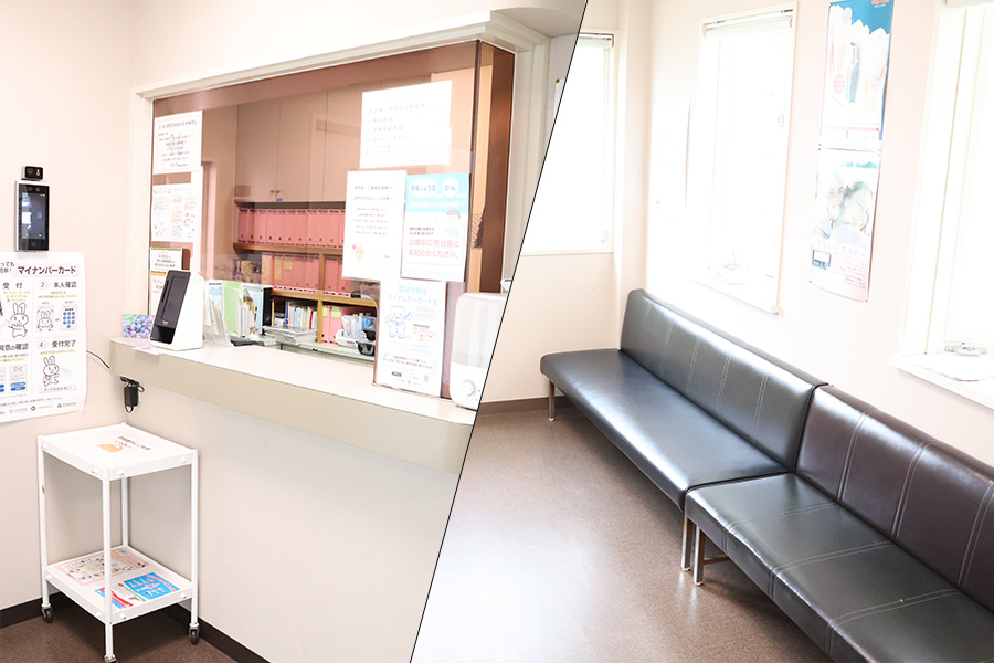 親切・丁寧な対応を心がけています。まずはこちらで診察券をご提示ください。患者さまの緊張を和らげる、ゆったりとした雰囲気となっております。