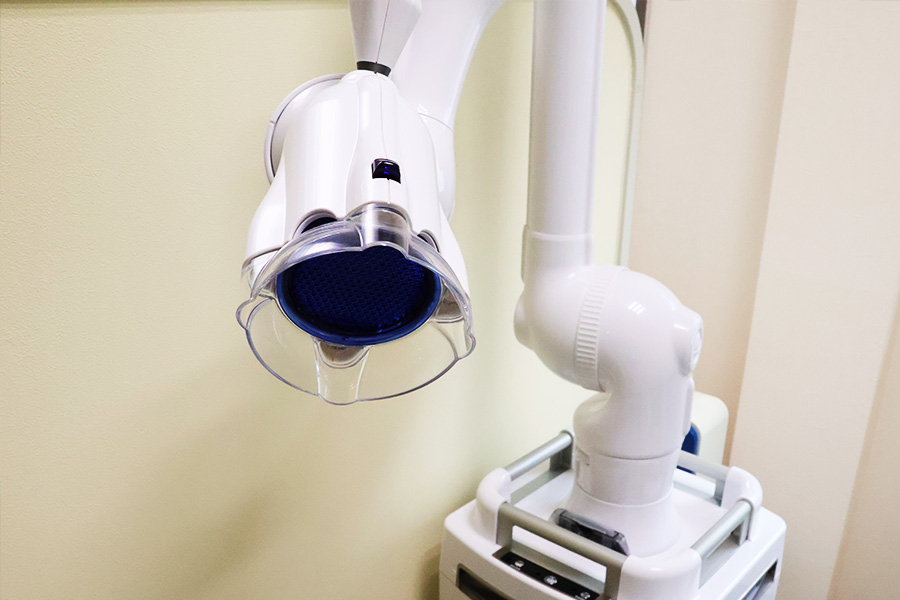 歯の治療を行うときは、歯の削りかす、血液、細菌など、目に見えない細かい粉塵が周囲に飛び散ります。粉塵が空気中に広がる前に口腔外バキュームで吸引し、院内の空気を清潔に保っています。